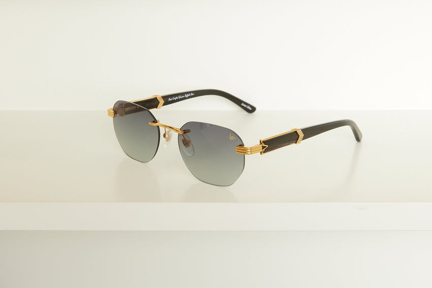 The VF Buffs are named after the street slang of buffalo horn glasses. Buffalo horn was the original material used in eyewear production in the 1940s and 50s. Our detroit player drill mount buffalo horn edition features arms made of sustainably source, genuine buffalo horn, reinforced with 24KT gold hardware. Each VF buff shows a unique pattern as they come from different horns and come in a video box telling the story behind the frame.