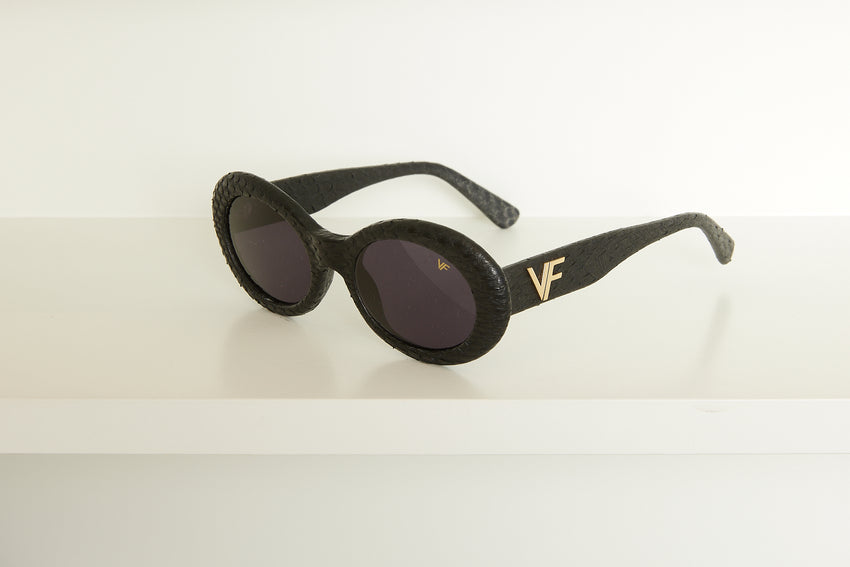 In the 1980's eyewear companies started experimenting with using snakeskin on their eyewear. A process that was perfected in Canada, became a lost art. Vintage Frames Company is proud to revive a vintage technique of applying snakeskin to our frames. The VF Cobain uses 100% genuine snakeskin to wrap the frame. Each individual frame is different taking the natural properties of the skin. A very rare addition to your vintage sunglasses collection!