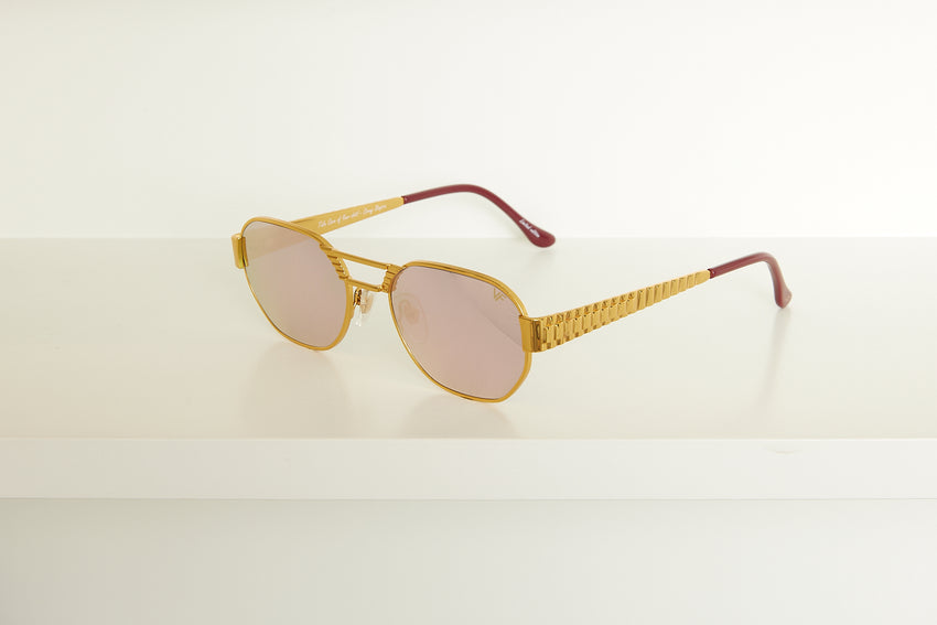Made using vintage machinery and techniques, the Crown features a 24KT yellow gold frame and is available in several lens options. Vintage Frames Company pays homage to its vintage archive by mixing historical fashion references with today's pop culture to create timeless collections of sunglasses and eyewear. The Crown is a unisex style and can be worn to elevate any look; from day to night.