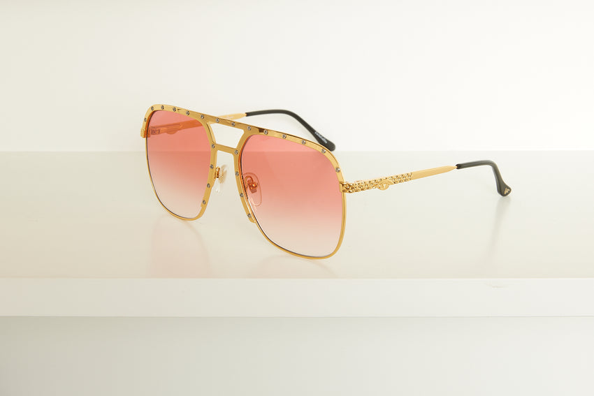 Made using vintage machinery and techniques, the XL Masterpiece Edition features a 24KT yellow gold frame and is available in several lens options. Vintage Frames Company pays homage to its vintage archive by mixing historical fashion references with today's pop culture to create timeless collections of sunglasses and eyewear. The XL Masterpiece Edition is a unisex style and can be worn to elevate any look; from day to night.