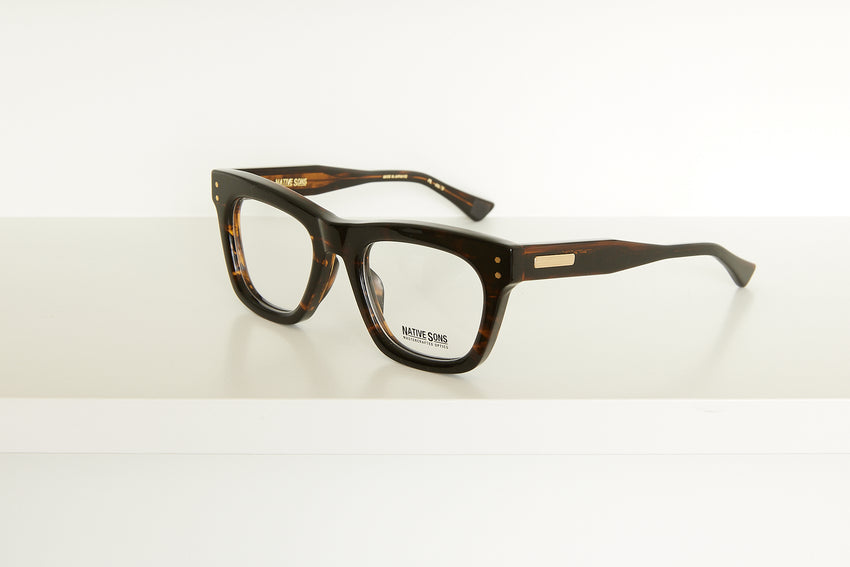 Named for the inquisitive Harry who never runs from trouble but never starts it either. This is a large square shape with a high nose. The browline is slightly rolling from the outside connection to a dip in the center nose bridge.
